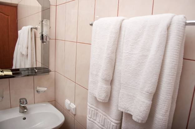 - Remove all soiled towels, bath mat, bath rugs from the room. Empty the trash and place the pail outside the bathroom.