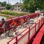 • Explore the south end of the trail, which starts in the heart of Indianapolis. After passing under interstate ramps and walking through residential areas, you'll reach a stunning bright-red bridge and eventually end up at the Indiana State Fairgrounds!